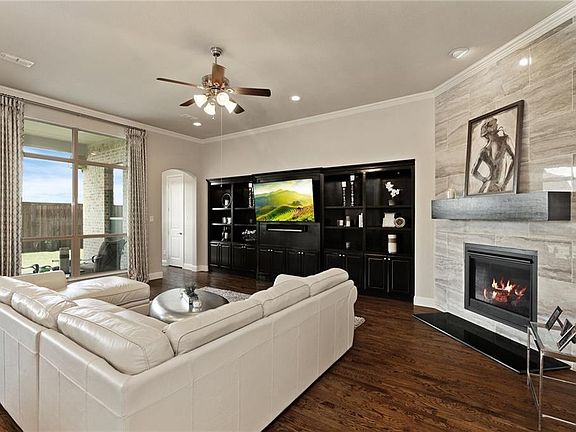 Absolutely Stunning 4 bed, 3.1 bath home w study & 3 car garage, in the highly sought after Saddle Creek community! Kitchen is a chef's dream, equipped w large island, wine or coffee bar, opens to family room. Home boasts beautiful hardwood floors, crown molding, tray ceilings & much more! Designer touches include a gorgeous floor to ceiling fireplace & built in bookshelves. Master retreat has coffered ceilings, a lovely en suite bath w soaking tub, large shower & WIC. Bi-level media room, & oversized game room w extra flex space. Nicely landscaped corner lot w a large backyard that is private This home is energy efficient, and is located in the highly rated PISD, w NO MUD or PID. This home won't last long!