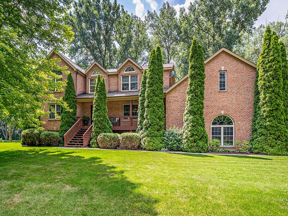 Beautiful and spacious brick/cedar home surrounded by mature trees, sprawling lawn, gorgeous woods and pond views, and privacy at the end of a cul-de-sac in highly desirable Dunn's Lake. Includes coveted deeded boat slip on Dunn's Lake with direct access to the Chain O'Lakes. Large modern kitchen features white cabinetry, marble backsplash, granite countertops, tons of storage, and stainless appliances. Open concept kitchen, dining area, and family room featuring a cozy gas fireplace and a wall of windows looking out to your large deck and gorgeous fenced backyard. Backyard backs up to over 2 acres of HOA woods and pond views. Home also includes a formal dining room, formal living room, half bath, laundry room, and large mudroom/pantry on the main level. Upstairs you'll find four large bedrooms with vaulted ceilings and two full bathrooms. The primary bathroom includes a double vanity, new quartz countertop, jetted tub and shower. Fully finished walk-out basement is an entertainer's haven, featuring wood floors, beautiful wet bar with full size stainless fridge, wine cooler, solid cherry cabinetry, quartz countertops, and tv. Basement also includes a half bath, and lots of space for entertaining, exercise equipment, pool table, and/or storage. The garage is the "dream garage" you never knew you needed. Oversized 3-car space with soaring ceilings and tons of room to store EVERYTHING plus room for the golf cart, kayaks, and bikes. Above the garage is a huge 30 x 30 unfinished walk-up attic accessed by its own stairway in the garage. You will not believe the amount of storage this house offers. Stroll down the scenic neighborhood wooded trail to your deeded boat slip where you'll also find the community fire pit and seating area with tranquil views of the lake. You'll never want to leave. Perfect family home or summer vacation getaway. New Roof 2021, Exterior Painted 2023, Blown Insulation 2022, NEW Driveway 2021, NEW Hot Water Heater 2020, Basement Reno 2020, Kitchen Reno 2016