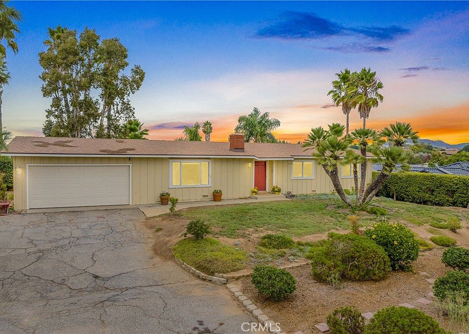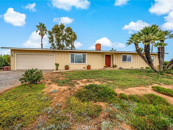 Welcome to your private retreat in the hills! Centrally located in the heart of Fallbrook and close to shopping, entertainment, trendy restaurants and award-winning wineries, you're going to love this one! Come explore this spacious 3-bedroom, 2-bath home offering both privacy and sweeping views of the surrounding hills and valleys. Inside, you’ll find huge living spaces designed for an open feel. The family room showcases views of the property, a cozy fireplace, and flows seamlessly into the heart of the home. Here you'll find an upgraded kitchen with granite counters, custom backsplash, new cabinets and new appliances. The kitchen leads to the formal dining room and is beautifully separated by a built-in glass-door hutch perfect for storage or a China Cabinet for displaying your favorite pieces. This dining room opens directly to the back patio, creating an indoor-outdoor experience for entertaining. Down the hall, three oversized bedrooms include a serene primary suite with large ensuite bath and step-in shower. Outside, enjoy a spacious yard with grassy areas, mature trees, and a covered patio—ideal for relaxing, gardening, or hosting talk-of-the-town BBQ's. Attached 2 car garage features a huge workshop/laundry room and convenient backyard access. You'll also appreciate a free-standing shed and RV PARKING WITH HOOK-UPS. Tasteful updates include clear termite, a new roof, exterior paint, recessed lighting, new furnace, new water heater, new garage door & opener, and new vinyl windows - all ensuring peace of mind for years to come. This home truly combines space, style, and upgrades with a setting that feels like a retreat. Welcome home!