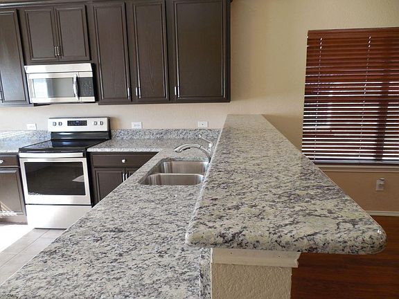 Yard maintained by Landlord, at Landlord's expense. This beautiful well kept home features 4-bedroom and 2-baths in an open floor plan. Split bedrooms. Large family room with fireplace opens to kitchen. The kitchen feature newly installed granite counter tops with under mounted sink, stainless steel range oven, and microwave-all in October 2019. Fresh interior paint. All carpet replaced-May 2019. Sendera Ranch is a desirable neighborhood which offers a community pool, golf, playground, park, and jogging paths. The landlord may consider one dog, under 40 pounds. No aggressive breeds. No cats. Tenant to verify all information and schools.