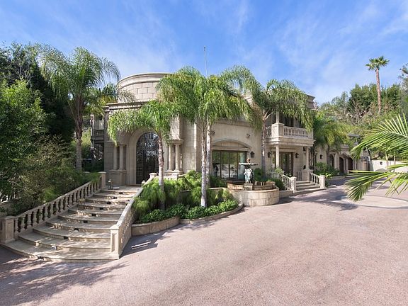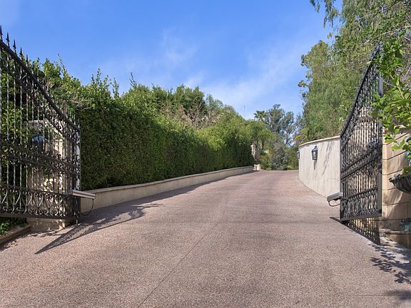 Beyond double steel gates that open to a long tree lined driveway offering ultimate privacy, 1181 Laurel Way is set on over an acre of land in Beverly Hills. The Mediterranean Estate boasts 9,370 square feet of unmatched grandeur and scale. Through a custom wrought iron front door, the 2-story dramatic grand foyer flooded with an abundance of natural light showcases an immaculate double staircase and tiered dome skylight. With intricate detail throughout, this estate features 7 bedrooms, 8 bathrooms, multiple beautiful living spaces, a formal dining room, limestone and hardwood flooring, cove lighting, coffered ceilings, crown molding, and custom cabinetry. The gourmet chef's kitchen includes top-of-the-line appliances, double ovens, a huge center island and a spacious breakfast area. Enter the opulent primary suite through double doors that open into the luxurious sitting area with a wet bar, a double-sided fireplace, dual bathrooms with walk-in closets, and a private balcony. Surrounded by lush, mature greenery, the backyard showcases an outdoor catering kitchen and bar area, a covered loggia with fireplace, and a resort-like salt-water pool including waterfalls, a waterslide, and a spa. Offering unparalleled convenience, the home includes an office, media room, gym, wet bar, and service quarters.