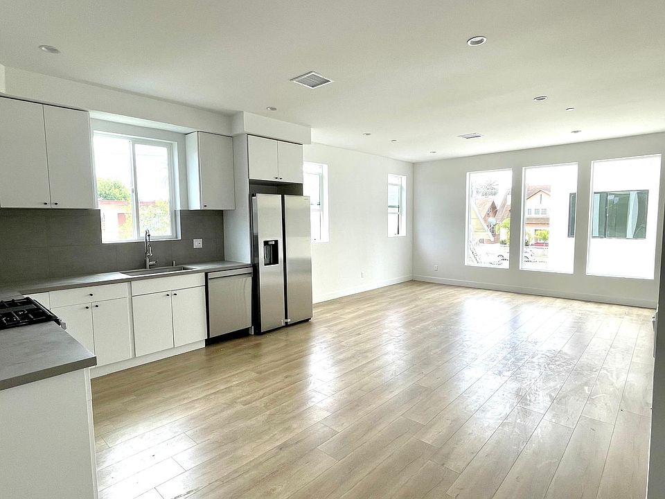 - Gorgeous units - must see in person! - Gated property. - Walking distance to Exposition Park, centrally located by USC Campus and Banc of California Stadium. - Spacious living area. - Tons of Natural Light. - Open floor plan with high ceiling and beautiful modern interior design and wood flooring throughout. - Brand new Central Air and Heating with Nest thermostat that can be controlled through the app for convenience. - Each bedroom has its own ensuite bathroom with a bathtub/shower, and modern designer tile. - Each bedroom has its own generous closet space. - Each bedroom has its own balcony. - Unit comes with new stainless steel Samsung appliances: fridge, gas stove, and dishwasher. - In-unit washer and dryer. - Unit is solar powered to reduce the electricity bill. - This brand new gated property has on-site private garage parking directly connected to the unit and is wired for EV charging. - Move in ready. - 3 Beds / 3 Baths - 1,621.00 SF. - 3-Story Modern Townhouse with a private parking garage. - 2 Parking spaces inside the garage. - 2024 Brand New Construction with solar panels installed to reduce electricity bill. - Move in ready. - Tenant pays all utilities such as: water, electricity, gas, trash and Internet. - Lease term: 12 months. - Deposit $3,900.00