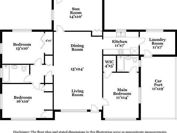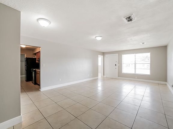 Larger on the inside than it looks on the outside, this Fort Lauderdale rental home has four bedrooms and two bathrooms in 1,446 square feet. Step into the space shared by the living room and dining room with its flush-mounted dome lights, neat baseboards, and large, bright window. The dining room opens to the sun room whose door leads to the large and sunny backyard. The galley-style kitchen has a double, stainless steel sink, lots of cabinet and counter space, and opens to a very spacious laundry room. At the front of the house, the main bedroom is both large and bright and features a walk-in closet and cozy en suite bathroom. Schedule a tour of this home today.