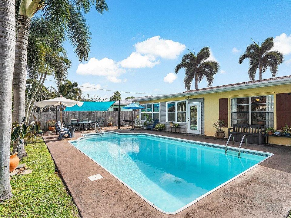 This perfectly situated 4 bedroom pool home in sought-after Golfview Harbour offers a tremendous opportunity to live close to beaches, lakes, waterfront dining, shopping, a 64+acre park, and much more. The home has been lovingly maintained inside and out. The front living room is open to the kitchen, dining room and large office/den. All 4 bedrooms are spacious, as is the laundry room which has a 2nd fridge, extra storage, and a pantry. There is a large utility/storage room that is also used as a workshop. The circular driveway allows for ample parking. The quiet, laid-back neighborhood is close-knit...and close to everything. Golf carts, water toys, RVs, boats welcome. No HOA, just friendly neighbors and a relaxing South FLA lifestyle. (click 'more' - and also see photo descriptions) (*A new vinyl pool liner with warranty is being installed)