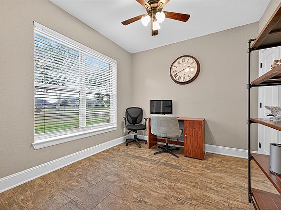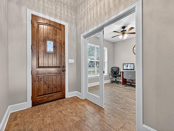 Immaculate, One Story Home on 1 Acre in Deer Creek Estates! Truly a CUSTOM home w/ soo many features! This 4-bed, 3.5-bath home with 3-car OVERSIZED garage and office (or 5th bedroom) is a true showstopper! Enter to Wood Speak Easy Front Door, 12x24 wood-look tile floors, new carpet in all bedrooms& chef’s kitchen w/ 3 CM upgraded granite, limestone backsplash, SS farmhouse sink& appliances, 6-burner stove,& 10-ft island! Modern lighting, ceiling fans & fresh paint throughout! Primary suite offers soaking tub, walk-in shower, dual sinks, vanity area, &custom walk-in closet w/built-ins & seasonal pull-downs. Relax outdoors under the covered patio with gas fireplace & outdoor kitchen, or in the saltwater heated pool & hot tub! Spacious backyard ideal for entertaining. Built with quality: post-tension engineered foundation, Roof (2024), 2x6 exterior walls w/blown-in insulation, 19-SEER dual-stage A/C & 3-car garage w/ half bath & pool access. In Needville ISD! See Feature list!