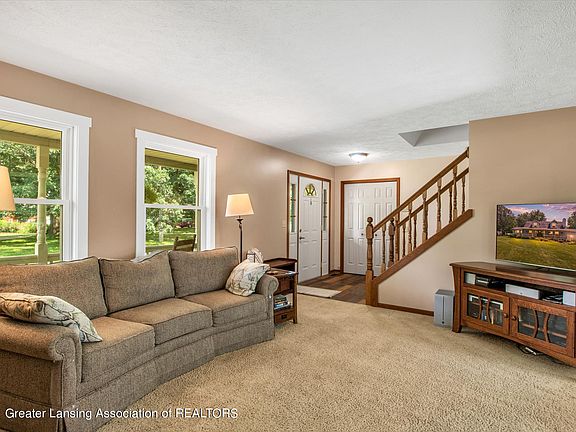 WELCOME TO 11810 RANSOM, DIMONDALE. BEAUTIFUL 5 BEDROOM - 2 1/2 BATH CAPE COD SET ON 1. 5 WELL LANDSCAPED ACRES. A SPACIOUS LIVING ROOM WITH OPEN STAIRCASE FLOWS TO FORMAL DINING ROOM AND A GOURMET KITCHEN RECENTLY UPDATED WITH QUARTZ COUNTERS AND A NEW SINK. THERE IS A 1ST FLOOR LAUNDRY ROOM, PLENTY OF CLOSET SPACE AND IS WHEELCHAIR ASSESSABLE WITH WIDE DOORS AND HALLWAYS. THERE ARE 2 BEDROOMS ON THE MAIN FLOOR INCLUDING THE PRIMARY BEDROOM SUITE WITH AWESOME PRIVATE BATH AND 3 BEDROOMS ON THE2ND LEVEL. DORMERS IN 2 OF THE LARGER BEDROOMS ADD MORE SPACE AND LIGHT. THE 3 RD MAKES A NICE DEN OR OFFICE. ALL WINDOWS HAVE BEEN REPLACED IN THE PAST MONTH ALONG WITH THE PATIO DOOR. THERE IS A REAR SUNDECK THAT PRESENTS A GREAT VIEW OF THE POND AND ALL OF THE WILDLIFE COMING OUT OF THE WOODS. 2 CAR ATTACHED GARAGE PLUS 24 X 30 POLE BARN TO STORE THAT RV. THIS PROPERTY IS MOVE IN READY . CALL TODAY FOR YOUR PRIVATE SHOWING! COUNTRY LIVING ONLY MINUTES FROM LANSING!