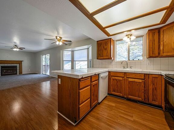 Flat-top electric rangeTheater room in basementBuilt in dishwasherBeautiful tiled countertops