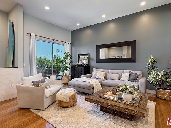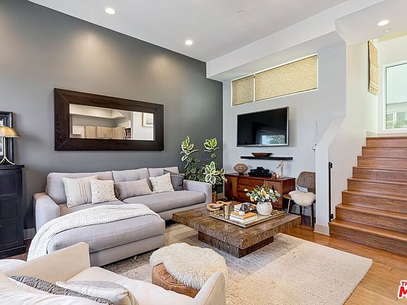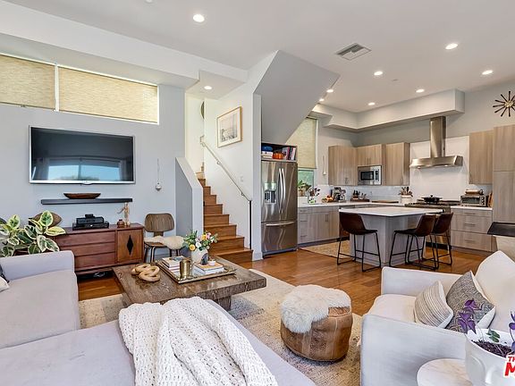Designed by the distinguished Killefer Flammang Architects, 8 East Homes merge sustainability w/ modern technology to provide a low-maintenance approach to LA homeownership. This sleek tri-level, single-family home with no attached walls dazzles with its contemporary design elements & modern amenities throughout. Ascend up a limestone tile stairway to the open concept living/dining/kitchen space complete w/ strand woven bamboo floors, & an inspired kitchen that showcases a dining island, stainless steel appliances & color quartz countertops. 11' ceilings, large windows & a generously sized patio allow for an abundance of natural light, while still affording a sense of privacy. The 3rd floor features a spacious master suite w/ a Juliet balcony, an additional bedroom/en-suite, & laundry area. Downstairs you'll find the 3rd bedroom/en-suite making for an ideal office or guest quarters, & an attached two-car garage w/ direct access. Revel in the 360-degree views as you unwind on the rooftop deck equipped w/ gas-barbecue hookups, custom-designed pergola &firepit. With a NEST system, EV charging outlet & fusion of other energy-efficient elements, this home appeals to today's homeowner looking to leave a small footprint.