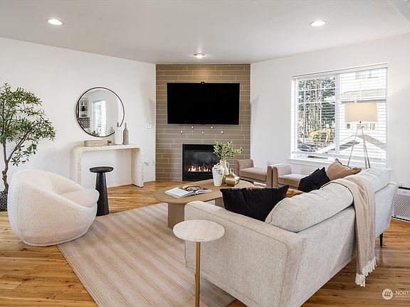 Welcome to Alderbrook Village West, where comfort meets convenience! This fully detached 4-bedroom, 2.5-bath corner lot home features an open-concept great room with hardwood floors, perfect for modern living and entertaining. The primary suite boasts two spacious walk-in closets, The lower-level bedroom makes an ideal home office, offering versatility to suit your lifestyle. Recently remodeled, this home also includes a private patio backing to a serene greenbelt and trails, plus a brand-new roof and furnace for worry-free living. Built in 2005, the west-facing home is in a gated community with easy access to Hwy 99, I-5, I-405, Hwy 525, shopping, and daily services. Enjoy the 2-car garage and peaceful surroundings!