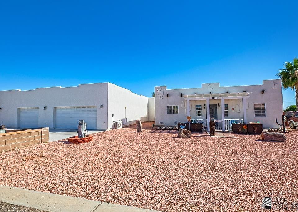 Distinctive 3 bed/3 bath home in the Coyote Wash Golf Course community, set on two tied lots within walking distance to the clubhouse and restaurant. Enjoy sunny days by the private pool and evenings on two separate patios—one poolside and one along the side yard. Car lovers will appreciate the oversized, climate-controlled 4-car garage (approx. 1,147 sq. ft.; 45' x 25.5') plus an additional 1-car garage/storage space (approx. 315 sq. ft.; 15' x 21'). Original construction of home was in 2008 with an approx. 1,155 sq. ft. large kitchen with quartz countertops, permitted addition completed in 2021, providing flexible living and entertaining space. A rare Wellton find—room for toys, hobbies, and guests in a prime golf-course location. All measurements were pulled from Yuma County Assessor.