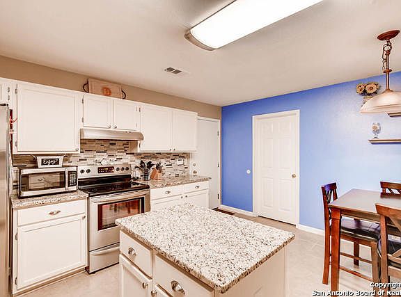 Welcome to this inviting 3bdrm 2.5 bath home in Helotes Crossing w/over $20k in upgrades. Island kitchen w/ breakfast bar boasts new granite & backsplash w/SS app. Eating area is open to family room w/fireplace to cozy up too. New flooring throughout, new blinds, paint inside & out, as well as New roof, fence & gutters. Master suite features a garden tub, double sinks & large walk-in closet. Big Backyard great for entertaining. Near heart of Downtown Helotes w/ Easy access to 1604 & I 10