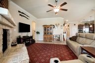 - One Living Area, Eat-in Kitchen, Two Eating Areas, Kitchen Island, Study/Library, Utility Room Inside, 1st Floor Lvl/No Steps, High Ceilings, Open Floorplan, High Speed Internet, All Bedrooms Downstairs, Walk-In Closet(s), Master Downstairs, Ceiling Fan(s), Solid Counter Tops, Programmable Thermostat