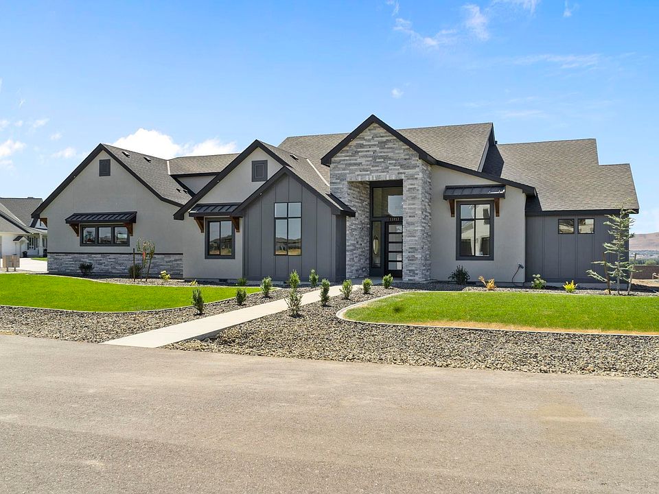 MLS# 284261 Discover unparalleled living in this exquisite custom-built home by Greg Senger Construction, boasting expansive panoramic views. Situated on a generous .65-acre lot in the prestigious Eagle Crest neighborhood of Pasco, this 3,238 square foot single-family residence offers a perfect blend of luxury and functionality. Step into a world of elegance with raised and vaulted ceilings that create an airy, open atmosphere throughout the main floor's 2,558 square feet. The great room, anchored by a cozy gas fireplace, flows seamlessly into a gourmet kitchen featuring custom-built maple cabinets, quartz countertops, designer backsplash and stainless-steel appliances and is open to the large dining area. Luxury vinyl plank flooring graces most of the home, while the primary suite and main bath boast elegant tile floors. The spacious primary suite is a true retreat, complete with a luxurious bath featuring a soaking tub, walk-in tile shower, and the convenience of stackable laundry hookups in the generous closet. Two additional bedrooms, a study, and a large laundry center complete the main floor living space. Upstairs, a 680 square foot bonus room with a wet bar and full bath provides the perfect entertainment space or potential guest quarters. This versatile area expands the home's living possibilities, ideal for various lifestyles and needs. Outdoor living is a dream with the 644 sq ft covered back patio, stubbed for a gas BBQ and offering the perfect vantage point to soak in the breathtaking river views. The expansive lot provides ample space for future additions such as a shop & pool, making it ideal for those who love to entertain or pursue outdoor passions.Additional features include a mud room for added convenience, a high-efficiency Carrier heat pump, and installed solar panels for energy efficiency. The home is plumbed for a water softener, and the spacious 1,025 square foot three-car garage is wired for an electric vehicle charger. The exterior showcases a stunning combination of stucco with krackshield, cultured stone, and wood siding accents. Located in the desirable Eagle Crest community, this home offers the perfect balance of privacy and accessibility. Whether you're seeking a family haven or an executive retreat, this property delivers on all fronts. Don't miss this opportunity to make this exceptional custom home yours. Schedule a viewing today and experience the luxury, space, and breathtaking views that could be your everyday reality.