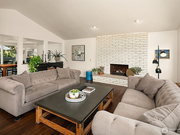Tucked away in a quiet Seattle cul-de-sac yet close to amenities, this darling updated home offers surprises around every corner. The remastered kitchen features quartz counters, painted cabinets, & engineered flooring throughout the main floor all to accentuate the ideal open-concept for any lifestyle. The sun-filled upstairs family room boasts vaulted ceilings & a cozy fireplace. The primary suite includes a wall of closets & a jetted tub in the ensuite bath. Downstairs offers a spacious great room w/ new carpet, a second fireplace & a versatile layout. A large 4th bdrm, w/ an updated 3/4 bath showcasing granite counters & tile surround shower. Relax, play, garden or BBQ in the flat backyard while enjoying time on the spacious Trex deck.