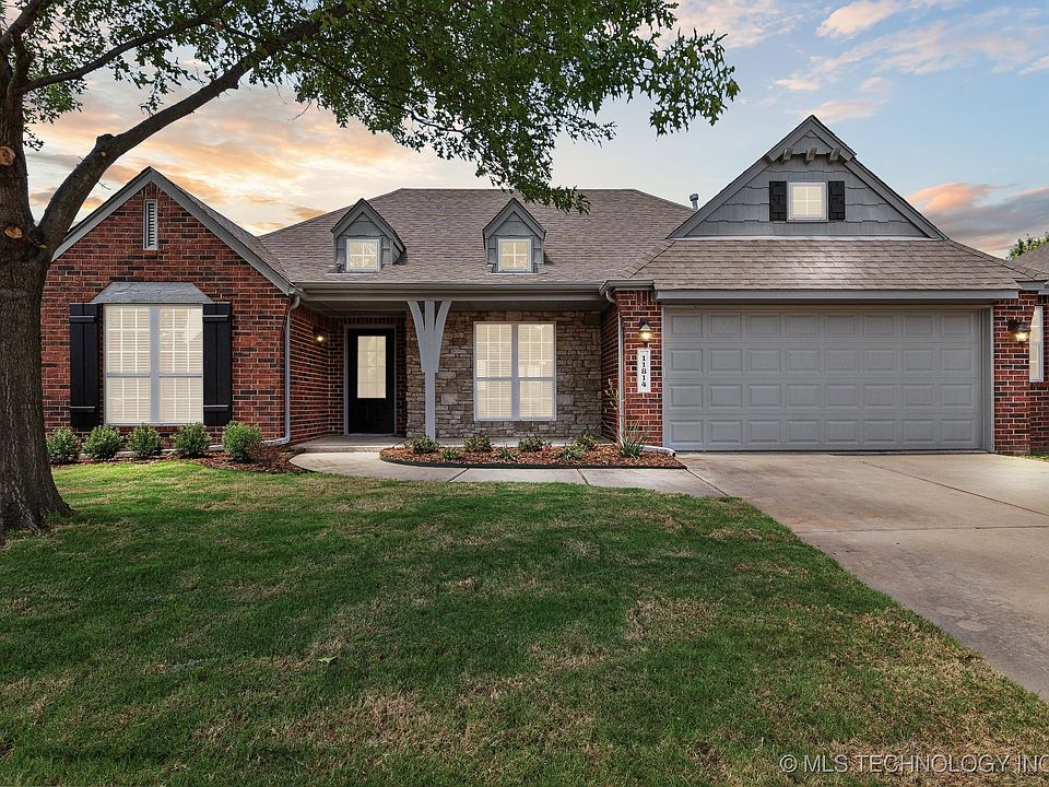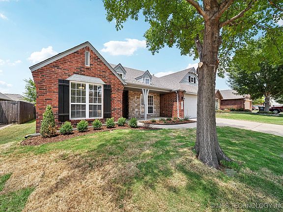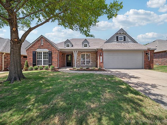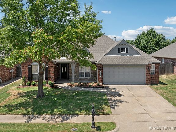 This Newly Renovated Jenks home in Stonehorse is sure to be TOP of your list. The 3 bedroom, 2 bathroom, 2.5 car garage home is located in Jenks School District / West Elementary and features Brand New Oak Hardwood Floors throughout, Fresh Interior Paint including walls, ceilings, cabinets and trim. Beautiful Expansive Open Living Space with Tall Ceilings will amaze you! You will love the Updated Interior Lighting and Vaulted Ceilings. The floorplan is WONDERFUL – Split Bedrooms, Formal Dining Room and a highly functional Office Space and Drop Zone. The Spacious Primary Suite features a Soaring vaulted ceiling and ensuite with Double Sinks, large Garden Tub, Separate Shower and features granite countertops with undermount sinks, new paint & hardware. The walk-in primary closet includes built in drawers, hardwood flooring, and new chrome hardware. From the curb, you will be delighted by new landscaping, new exterior paint and a new garage door. There is a nice sized coved front porch and large covered back patio. The home comes fully equipped with a stainless-steel refrigerator, a recently replaced roof (2019), a new HVAC system (2022), a new water heater (2023) and a new garbage disposal (2023). The Stonehorse neighborhood amenities feature a neighborhood park in close proximity to the home which includes a basketball court, soccer goals, playground and trails. The home’s location allows convenient access to Highway 75 and the Creek Turnpike. You are only a short distance away from the new Tulsa Outlet Mall, downtown Jenks, the Riverwalk, the Jenks Aquarium, and South Lakes Golf Course. Schedule your showing today to view this beautifully remodeled Jenks home. See Today and Make this Your New Home! Owner / Associate