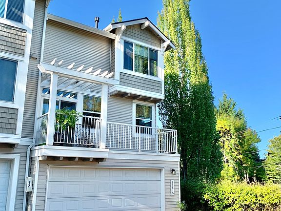 Corner townhome with windows on three sides looking over the hilly landscape. Amazing location right off of highway 405. Minutes from Totem Lake Square and Woodinville Town Center. Multiple bus stops only a few steps from property. Parks and trails within walking distance. Northshore school ISD. 3 bedroom with 2.5 bathroom floor plan. Lots of bright light filtering in all day with gorgeous sunset views over the hills. Large family room with fully remodeled kitchen. Kitchen boasts floor to ceiling cabinets, gas stove, farmhouse copper sink, large granite peninsula. Large balconies on both sides creating cross-ventilation for summer months. Tall ceilings on all floors. Cozy reading nook in stair landing. Walk in closet in master bedroom. Brand new Washer/Dryer on bedroom level. Flex room on first floor for home office/gym/den. Custom made desk with wall storage. Attached covered patio. Additional storage in 2 car garage. Images are when the owner occupied the property. Currently tenants are in move out process.