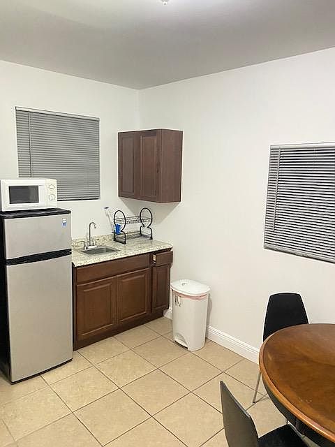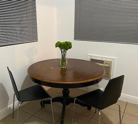 private efficiency, freshly painted , new blinds on all windows. F. Fully furnished bedroom : full size bed, drawer chest and side table , also nice closet size. Kitchenette with small refrigerator, microwave , sink and cabinets. ( no stove) . Dining table with 2 chairs. Bathroom with shower. There is one parking spot in the front of the house. Near Turnpike , and FlU Main campus. Electricity and water are included. No internet. Available for 1 or 2 persons max. No pets, no smoking. One month security and first month at time of leasing. Background check with DL and proof of employment .