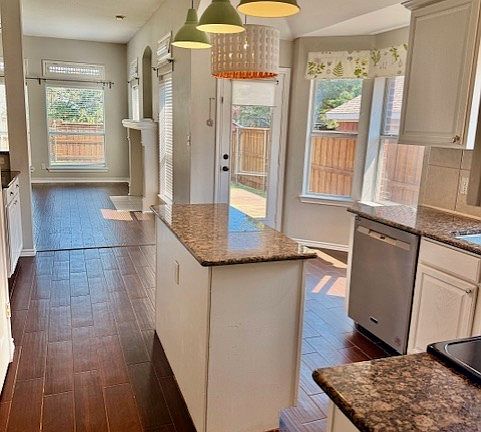 Ready move in 4 bedroom with over sized family room, and full wall of windows and cast stone fireplace. Kitchen overlooks family room complete with granite and island.Private master split from other 3 bedrooms. Master bath has separate shower and vanities, custom drapes, some shutters, wood from entry to dining and family room. Light and bright and shows great! New painted through out all rooms, upgraded bathroom. The completely remodeled kitchen overlooks the family room and offers granite counter tops, a functional center island, ss appliances, and ample cabinetry, combining style with practicality. wood flooring throughout the main living areas, including the family room, kitchen, and dining room. all bedrooms with carpet. Easy to access highways and shopping areas. a year or year+