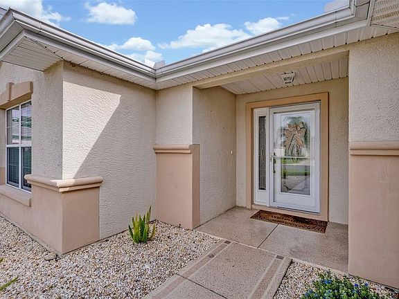 Gorgeous TURNKEY Home in Spruce Creek Golf & Country Club – Move-In Ready! Welcome to this beautifully maintained 2-bedroom, 2-bathroom home with a flexible office/den that can easily serve as a THIRD BEDROOM, located in the highly sought-after Spruce Creek Golf & Country Club, a premier gated 55+ community just minutes from The Villages. This move-in ready gem offers peace of mind with a new roof (2022) and HVAC system (2017). The home has been freshly painted and upgraded with new lighting and ceiling fans. You’ll love the tile flooring in every room—no carpet here! The open living space flows effortlessly into the expansive extended lanai, perfect for enjoying Florida’s beautiful weather year-round. The extended garage provides extra room for a golf cart, hobby space, or additional storage. Offered TURNKEY, this home includes everything inside except for the car, golf cart and a few items in the garage—over $13,000 in stylish furniture purchased within the last two years, making it the ideal seasonal or full-time residence. Enjoy resort-style living with access to golf, pools, fitness center, pickleball, restaurant and more in this vibrant, gated active community. Don’t miss this rare opportunity to own a furnished, upgraded home in one of Summerfield’s most desirable neighborhoods! Schedule your private showing today!