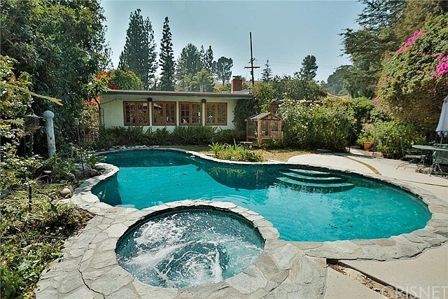 Situated in a prime neighborhood, north of Rinaldi. Great square footage with a unique lot shape and size! Huge backyard features lush landscaping, nice size patio, wood deck, Sparkling Pool + Spa with stone coping. Spacious living room with vibrant colors. Oversized family room has tile floors, ceiling fan, and lots of windows creating natural light. The formal dine will seat many and has easy access to the kitchen. Spacious master suite has separate shower and tub. All other bathrooms are large in size. Kitchen offers gorgeous marble counters, ample cabinetry and a breakfast area. Some of the bathrooms have been updated.