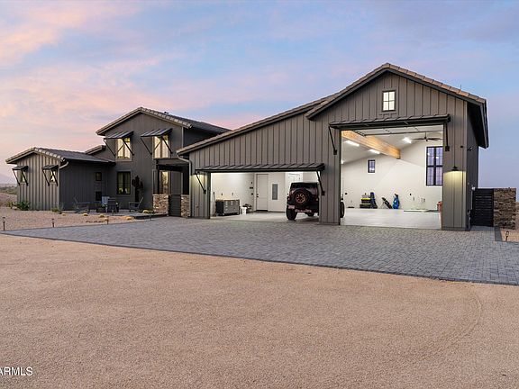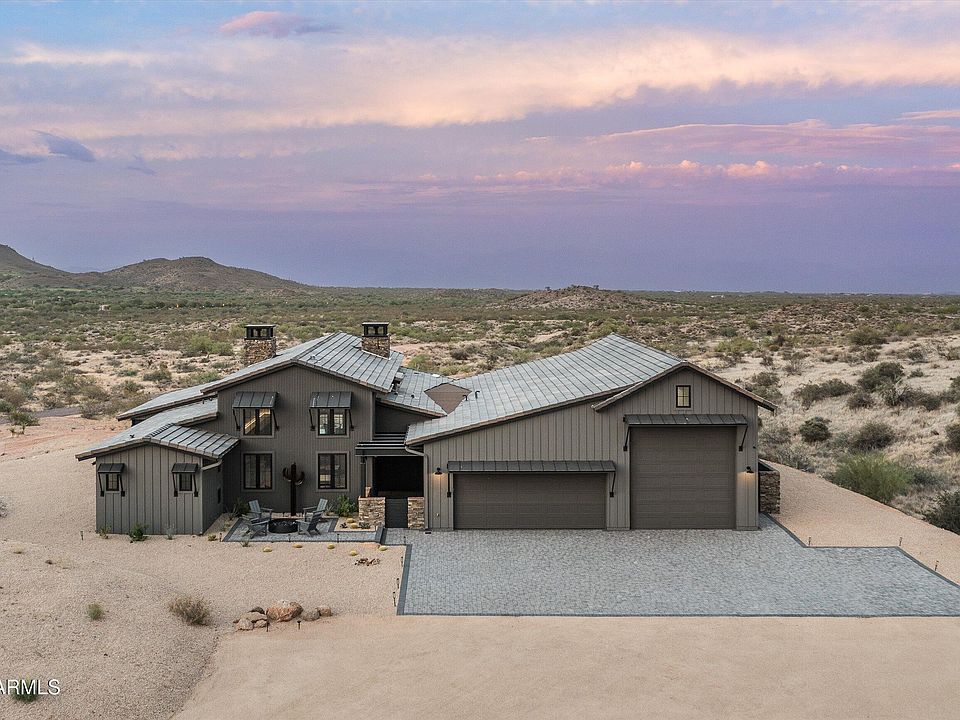 Welcome to The Roamstead, a modern barn retreat set on five private acres in North Scottsdale, designed as both sanctuary and base-camp. Panoramic views sweep across the Sonoran horizon, while bold materials like Cor-Ten steel, reclaimed wood, and exposed beams anchor the home in strength and authenticity. Inside the great room plan includes 3 Bedrooms and 3 Bathrooms with natural textures and expansive glass that frame open living spaces that connect seamlessly to the outdoors. Covered patios, integrated heaters, and fire features extend the home's living environment year-round. At its core, a climate-controlled ''Toy Barn'' offers unmatched flexibility with 2,243 SF of air conditioned space for RVs, car collections, and adventure gear. Thoughtfully crafted for both fine living and rugged adventure, this extraordinary property seamlessly blends modern luxury with rustic charm.