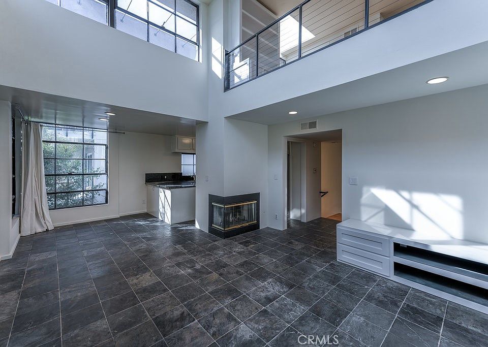 This spacious tri-level, two-bedroom townhouse is located in a gated building in West Los Angeles, just a short walk from shopping and restaurants. Upon entry, you'll find both bedrooms. The primary bedroom features slate flooring, a walk-in closet, and an en-suite bathroom with double sinks and granite countertops. The guest bedroom has access to a full guest bathroom. On the second level, there's a living room with soaring two-story ceilings that fill the space with natural light, complemented by slate flooring. The dining area flows seamlessly into the living room, creating an open feel. The kitchen boasts granite countertops, white cabinets with brushed silver hardware, and stainless steel appliances. For added convenience, there's a half bathroom on the downstairs level and a laundry area with full-size washer and dryer. Upstairs, you'll find a loft with hardwood flooring and built-in shelves, along with a sliding glass door leading to a spacious private balcony. Additionally, the property features an attached two-car garage.