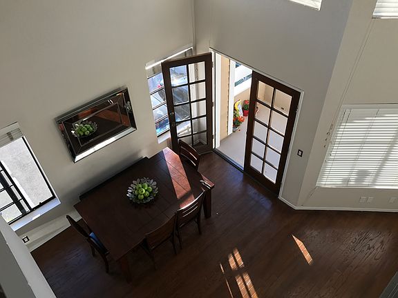Contemporary Top Floor Townhouse in desirable Mar Vista neighborhood - 2 bedroom & 2 bathroom with a separate spacious loft. Step into this sun filled, West facing unit and find yourself looking up to the soaring ceiling heights and high wall windows in the living room and kitchen. Kitchen upgrades include new cabinets, stone counter tops and stainless appliances. Hardwood flooring, wood burning fireplace and a wet bar with wine cooler. Unit also has separate balcony, 2 car parking, brand new central air & heat unit, washer/dryer included. Pets ok. Close to trendy Mar Vista shops, bars & restaurants