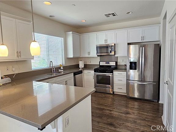 This beautiful 2027 square foot condo offers 5 bedrooms and 3 bathrooms, making it an ideal home for families or those seeking extra space. Located at 11818 Greenbrier Ln in Grand Terrace, this property features a modern kitchen with stainless steel appliances, quartz countertops, white cabinetry, and pendant lighting over a spacious breakfast bar. The open-concept design flows into the living area with wood-style flooring, recessed lighting, and large windows that allow for plenty of natural light. Sliding glass doors open to a private outdoor space, perfect for relaxing or entertaining. The home is also equipped with solar panels, two Tesla batteries, and an EV car charger, providing energy efficiency and convenience for electric vehicle owners. With its size, layout, and prime location near schools, shopping, dining, and freeway access, this home provides both comfort and modern living.