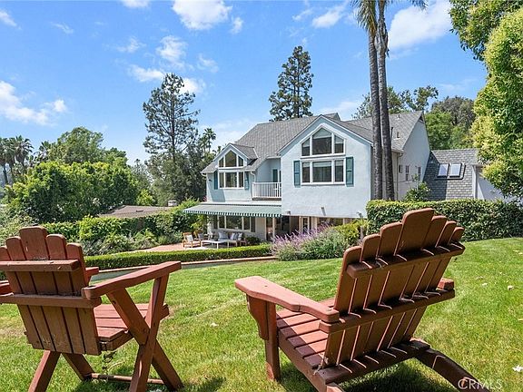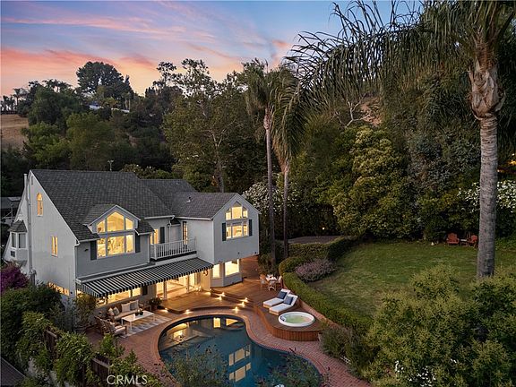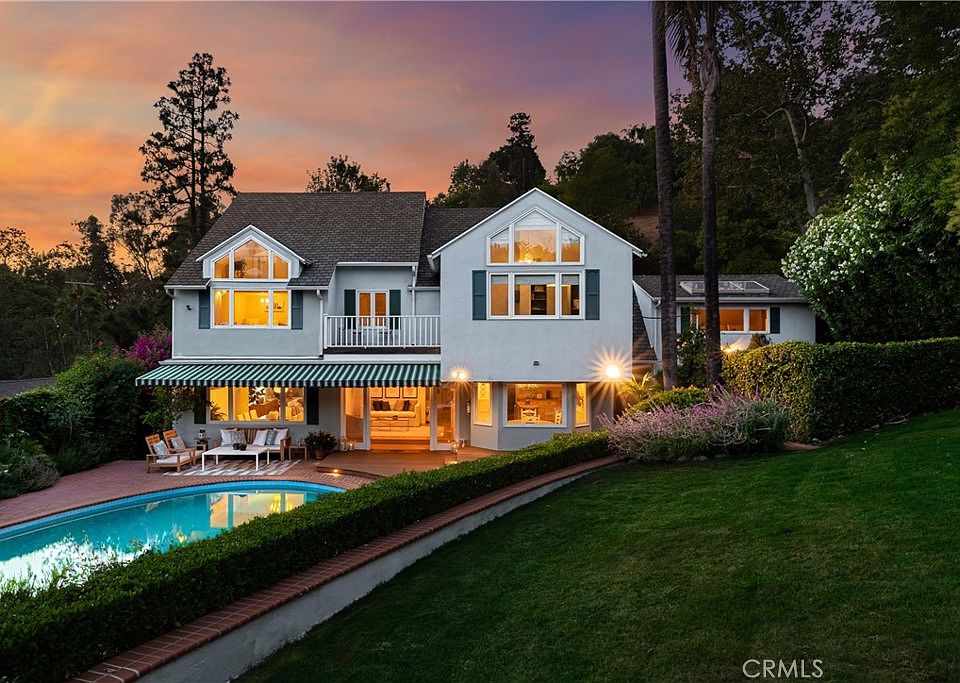 Tucked away in the hills of Studio City at the end of a secluded cul-de-sac, this gated celebrity compound sits on a sprawling 13,000+ sq ft lot that offers complete privacy and breathtaking views. Featured in numerous publications, this enchanting 1940s Cape Cod estate – complete with a separate guest house – has been beautifully updated throughout, thoughtfully blending timeless charm with modern amenities. The bright and airy main level welcomes you with a spacious open-concept formal living and dining room that flows seamlessly into an inviting family room, here double French doors open for indoor-outdoor living and entertaining. A culinary enthusiast's dream, the designer chef's kitchen is equipped with top-of-the-line Viking appliances, granite countertops, and a sun-drenched breakfast nook. Upstairs, you'll find four generously sized bedrooms, including two with vaulted ceilings and oversized windows that perfectly frame the picturesque vistas. One of the bedrooms boasts a loft space, while the other has access to a private balcony. The expansive primary suite serves as a private sanctuary, featuring stunning views, a cozy fireplace, dual walk-in closets with custom built-ins, and a spa-inspired ensuite bathroom, complete with a clawfoot soaking tub that's bathed in natural light from two skylights above, a rainfall shower, and double vanity. Designed for privacy, the serene backyard is enveloped by lush mature landscaping and boasts no visible neighbors or overhead utility wires. This park-like retreat is highlighted by a sparkling PebbleTec pool, built-in spa, and outdoor speakers. The guest house, with its own private entrance from the street, offers a kitchenette and full bathroom – a perfect setup for extended family, guests or rental income opportunities. Additional amenities include a large office with a private entrance, a laundry room, security system, gated driveway, and two-car garage with a Tesla supercharger. Ideally located south of the Boulevard in the exclusive Fryman Canyon Estates (a fire-wise community with access to deep discounts for fire insurance), this exceptional property lies within the coveted Carpenter School District and is just moments away from trendy restaurants, boutique shops, Fryman Canyon hiking trails and so much more.