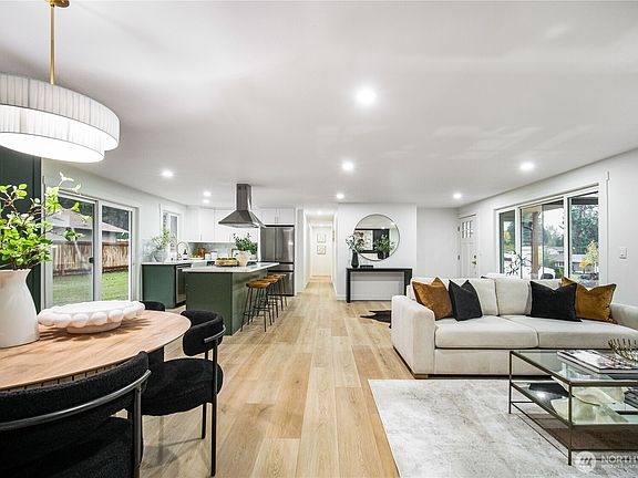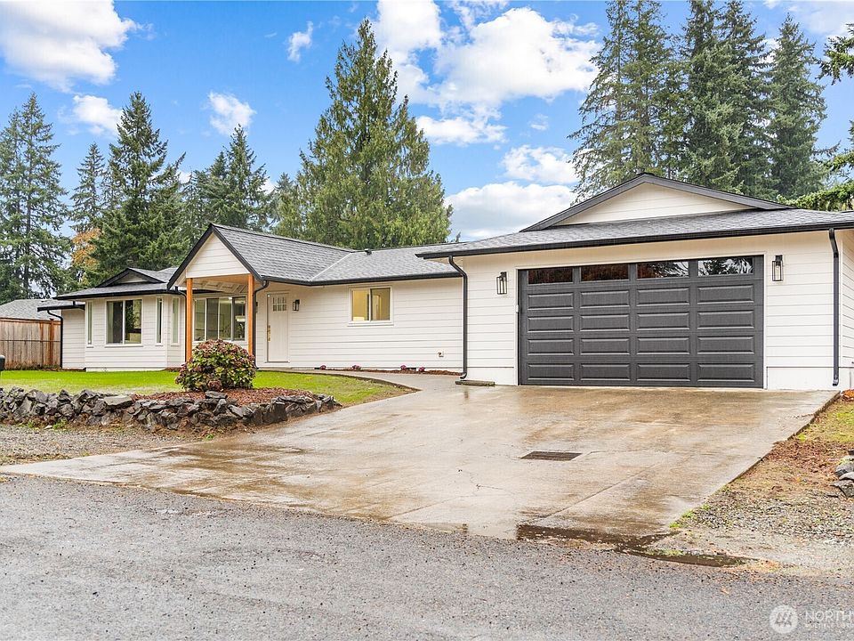 Welcome home to this fully remodeled rambler! Sitting proudly on a large corner lot nearly ¼ acre, you'll find modern luxury with everyday function. An open, airy floor plan, stunning custom kitchen with quartz counters, gold finishes, gas range and a modern sink. The dining area flows seamlessly into a cozy living space centered around a feature fireplace wall with lime wash surround and vertical slat design—your perfect statement piece. Enjoy a four-car garage (two wide and two deep) with an attached workshop and storage area, RV parking and fully fenced yard. Brand new roof, siding, plumbing, new electrical panel, heating and cooling with two mini splits. Easy access to Hwy 410, no HOA, and a ton of parking make this one a rare find!