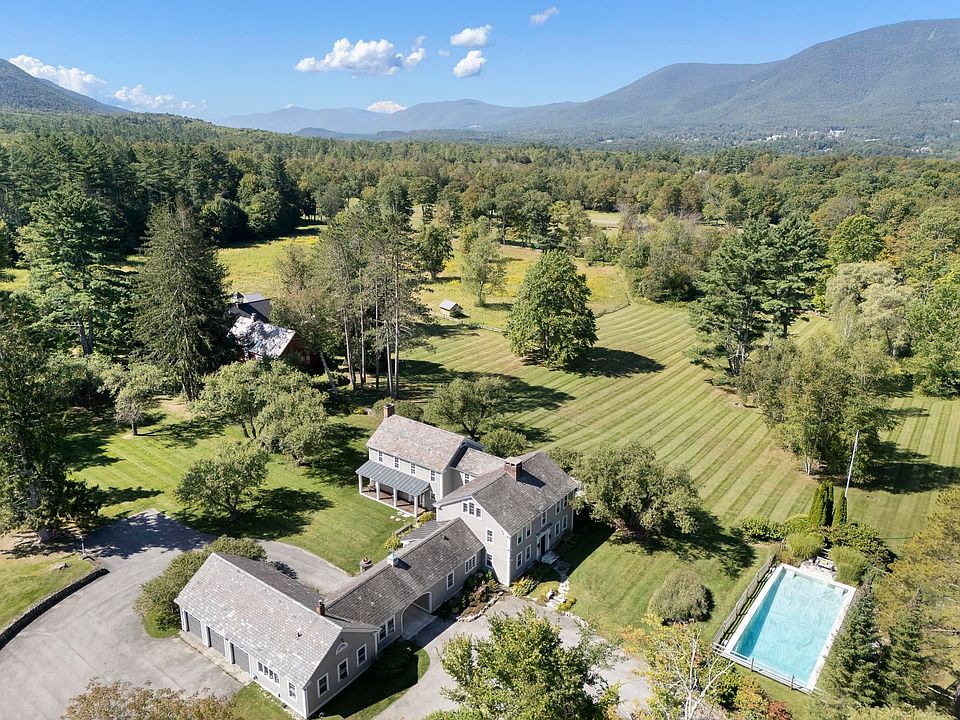 Peacock Hollow, a c.1790 completely private estate, is gracefully sited on 29.9 acres surrounded by sweeping mountain views, a running stream, and bordered by the forest. This rare offering combines historic character with refined updates, creating a legacy property designed for both intimate living and grand entertaining. The 5,500 square foot main residence offers five beautifully appointed bedrooms, five fireplaces, original wood and marble floors, and handsome moldings throughout. The home has been thoughtfully expanded to include a sun-filled country kitchen with custom cabinetry, formal and informal dining rooms, a library, family room, and multiple living spaces that open to marble terraces and gardens. Enhancing the estate are extraordinary amenities, including a marble in-ground swimming pool with stone terrace, a tennis court, and a one-bedroom caretaker’s cottage with attached garage for on-site management or guest overflow. A 2,400 square foot three-bedroom guest house, created from the original c.1796 post-and-beam barn, blends historic charm with modern comfort. A goat and chicken barn, equipment barn, and a separate 30’ x 60’ seven-bay toy and car barn provide abundant storage and the opportunity for a true Vermont farmstead lifestyle or a spectacular car collection. The grounds are equally captivating, featuring mature landscaping, open meadows, orchards, perennial gardens, and stone walls. Pergolas, walkways, and extensive marble terraces.