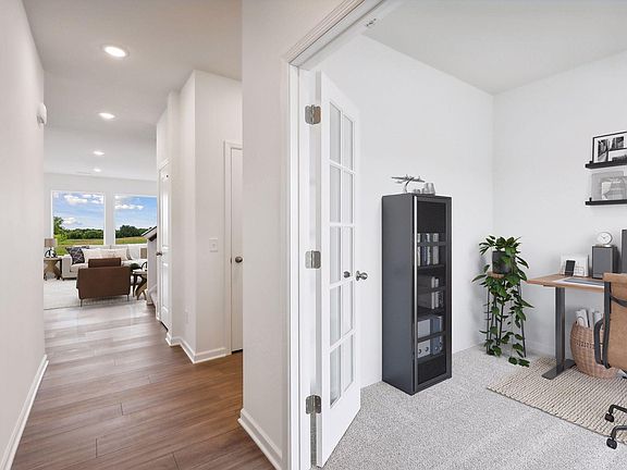 The Sandover has gracious living across more than 2400 square feet over two levels. Natural light fills this entire home, coming in from the thoughtful use of oversized windows throughout! On the main level, you'll be impressed by the incredible kitchen layout, satisfying even to the most renowned cook! The dining area, large family room (with centered fireplace), and study with glass doors complete the first level. Upstairs, unwind and relax in the incredible Owner's Suite, complete with private bath and walk-in closet! Three secondary bedrooms, a hall bath, a centrally located laundry room, and a loft/retreat finish off the upper level. Amber Fields features ample community spaces, including multiple park & playground spaces, miles of paved trails, pickleball courts, and a fenced in dog park!