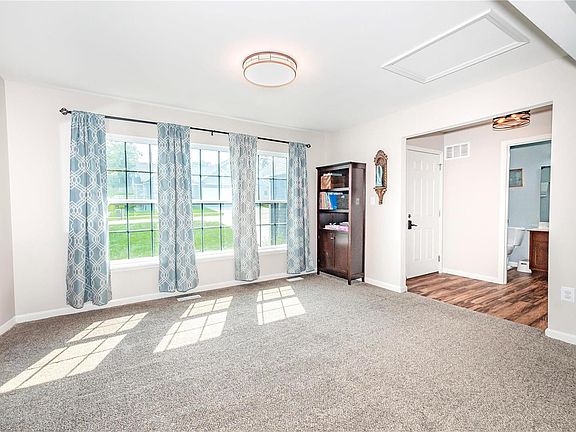 Immaculate 7 year old 1.5 story 4 bed 3 1/2 bath Julieann w/ over 3300 living sqft is sure to impress! Freshly painted main floor spaces, the light filled dining room transitions into the stunning 12 ft ceiling Great Room w/ a wall of cascading windows flow effortlessly into the eat in kitchen that boast LVP flooring, center island, & SS appl that stay. Ext deck off your breakfast room is a serene setting backing to nature. Main floor Primary is complete w/ spacious ensuite, double vanity, separate soaking tub, tiled bench/seated shower encased by glass doors, linen closet & walk in closet is a must have luxury! 3 car gar & main floor laundry round out the main level. Upstairs is the guests domain! 2 generous sized bedrooms, closets galore, full bath & zoned hvac bring all the comfort up here. Lower Level is finished for maximum usage including rec space, poss movie room, 4th bedroom, full bath w/ steam shower, new LVP flooring throughout & a hidden room! Schedule your showing today!