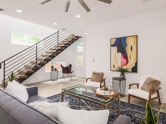 This stunning home is a rare find in East Austin. You enter the property through a privacy gate into a gorgeous 2,800 sq ft home. The home has 3 bedrooms and 4 full bathrooms, with the master suite on its own floor. Huge his and hers closets, wet bar, and luxurious master bath are all a part of the breathtaking master floor. The home also features a beautiful floating staircase and gourmet kitchen. The kitchen has an Italian appliance package equipped with a side-by-side refrigerator, Bertazzoni convection oven, Bosch HE "Whisper Quiet" dishwasher, and a built-in beverage center. You will enjoy dining al fresco on the screened-in back patio and very private backyard, with no houses in the backyard and plenty of room for a pool. This beautiful home has two living rooms, an oversized garage, a third floor deck, and is thoughtfully built by MJC Group.