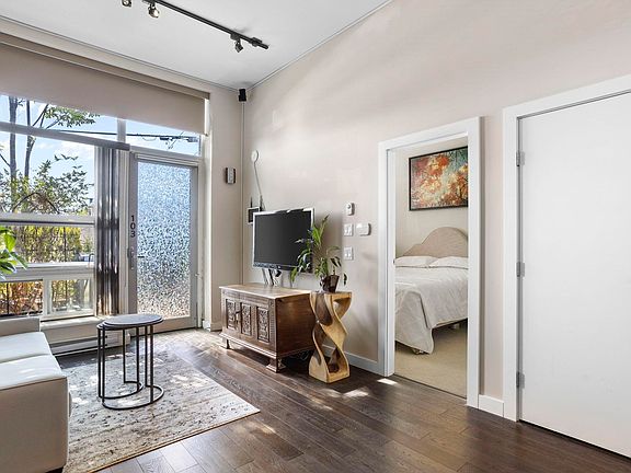 Large private patioSoaring ceilingsOpen-concept layoutStainless steel appliancesQuartz countersCustom flat-panel cabinetryLarge walk-in closet