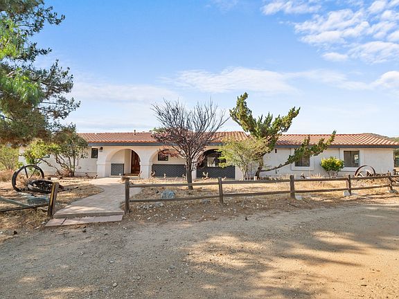 Secluded away in the serene city of Agua Dulce resides a darling 2,499-sqft home stretched over 2.37 acres of land! A large front porched styled with rounded archways details the exterior before leading into a spectacularly bright and airy home featuring flawless taupe tone laminate flooring installed throughout, recessed lighting, and large windows effortlessly draw in natural SoCal sunshine. Be greeted first by a formal living room offering a large grey brick fireplace before venturing into the sizable kitchen featuring beautiful stone countertops complimented by a tile backsplash, ample built-in cabinetry, stainless-steel appliances, plus natural gas and a water softener for the entire house. A slopped wood paneled ceiling is detailed by matching wood beams as it adjoins the formal dining room and relaxed family room complete with a cozy fireplace, large wet bar with storage, and sliding door access out to the patio. Down the main hallway, find spacious bedrooms offering built-in closet space fitted with mirrored sliding doors. The primary bedroom includes and private bathroom with a walk-in shower and a large walk-in closet. Journey out to the rear of the property to find both covered and open patio area, a large barn with stables plus a four-rail horse corral that's perfect for the avid equestrian. Plus, discovered a large 1,100-sqft separate workshop featuring 220V and a 3-car parking/storage area. Located equidistant to the heart of Canyon Country and Palmdale, plus nearby many local attractions, dining, and 14 freeway access!