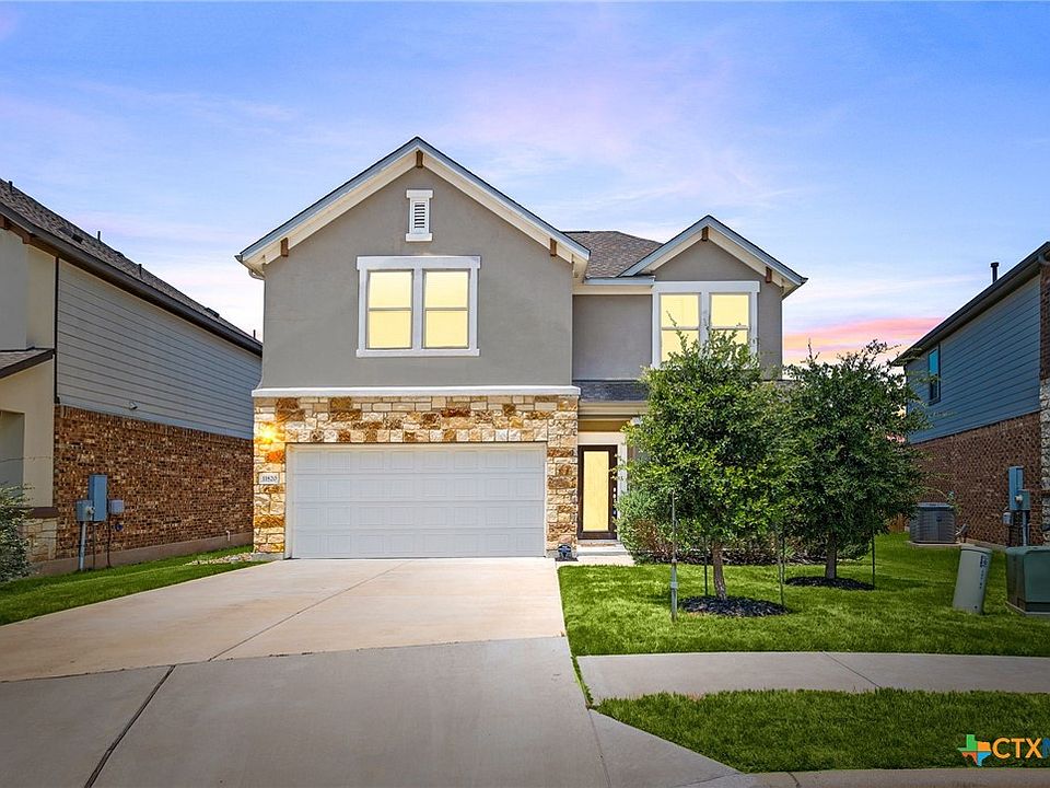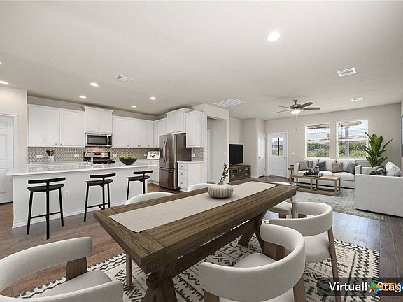 Tucked away on a peaceful cul-de-sac, this beautifully upgraded home blends privacy, functionality, and timeless style. The open-concept layout creates a spacious and inviting atmosphere—perfect for both everyday living and entertaining. The main floor features a generously sized kitchen with a large island, abundant white cabinetry, and a walk-in pantry. A private office with a charming shiplap accent wall offers a quiet space to work or study. The bright great room opens to a fully fenced backyard with an expansive patio, ideal for outdoor gatherings. The main-level primary suite boasts a walk-in closet and en suite bath with dual vanities. A convenient laundry room and stylish powder room complete the first floor. Upstairs, you’ll find three comfortable guest rooms, a full hall bath, and a versatile family room. Additional highlights include an attached garage, solar panels for energy efficiency, and a prime location just minutes from the exciting new East Village Development. This home is move-in ready and designed to impress!