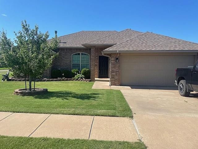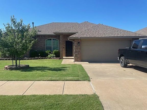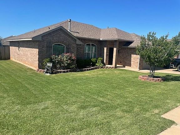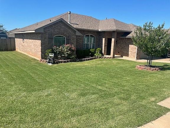 Beautiful home on a corner lot ready for it's new owner. Located in Yukon but Mustang schools. 3 bedroom, 2 full baths and a 2 car garage. Home has been completely repainted inside. Newer flooring installed in all 3 bedrooms so there is no carpet in the home. Newer light fixtures in some of the rooms. Living room has a stunning corner fireplace with plenty of space for all your furniture. Kitchen has granite, a large kitchen window, lots of cabinets, a bar eating area and pantry. Large dining area for your table. This is a true split floor plan. Primary bedroom is spacious enough for any size bed. Walk-in closet. Dual sinks in primary bath with tub and shower. The fenced backyard is large and includes a shed. Great floorplan with plenty of natural light. There is even a playground area in the addition for the kids. Minutes away from turnpike, shopping, restaurants and schools. Make your appointment to see this home!!!