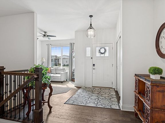 Gorgeous ranch home in the highly desirable Talamore Adare in Huntley with a rare full unfinished basement! Nestled on a cul-de-sac, this fantastic Napa model home is ready for immediate delivery and offers privacy galore with views of the stocked fishing pond and open space. Open floor plan, 9' ceilings, engineered hardwood throughout main living spaces and neutral decor. Stunning finishes include sleek custom window treatments of plantation shutters and Silhouettes, custom closet organizers in both bedrooms and new front storm door. Highlighting $61K in builder upgrades and smart home features; WI-FI certified Home Design - Ring Video doorbell and alarm system, Smartlock, Smart thermostat and air exchanger that circulates new air throughout the home every 17 mins. Sparkling white kitchen with Subway tile backsplash, Quartz countertops, soft-close drawers, GE Profile appliance package, upgraded Refrigerator with a Keurig, vented microwave with convection option and custom spice rack. Napa model offers flexibility with living room/den/study, spacious foyer, upgraded stair railing leading to the basement and generously sized laundry room with utility sink. Primary bedroom upgrades boasts tray ceiling, ceiling fan and upgraded full bath with 1/2" surround glass shower, oversized tile, dual vanity with comfort height and custom light fixtures. Second bedroom is perfect for guests or a wonderful office/den. Full bath with tub/shower and custom height vanity. Sliding door leads to brick paver patio and serene views from every angle. Professional landscaping and brick paver walkway in front complete this custom look! Doubling the size of your home, this 1428 sq. Ft. of space is ready to go. With large window wells, custom window well covers and each fitted with an egress ladder; this allows for endless options. Andare Talamore offers Resort-Style living with it's Active adult 55+ community! Association dues include: lawn care, snow removal, 8,000 SF clubhouse, Fitness center, 2 swimming pools with water slide and splash pad area, picnic pavilion with outdoor fireplace, tennis court, pickle ball court, party room with kitchen, game room, meeting room, and playground. Crushed limestone walking paths and catch-and-release fishing pond just complete the package! This is a lifestyle!