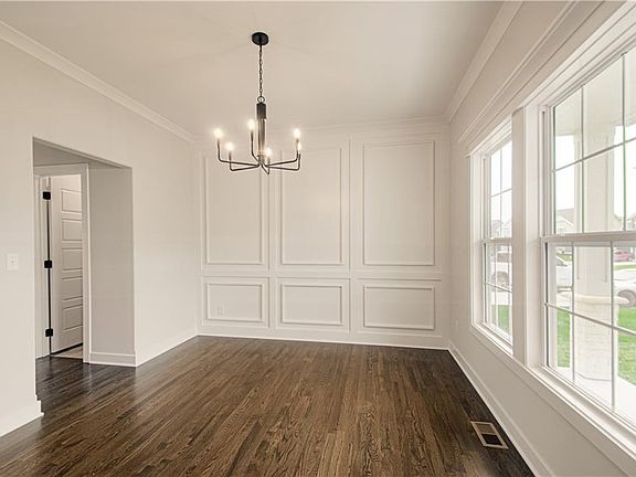The "DAYNE" by Robertson Construction! A Gorgeous 2-Story offering 4 bedrooms, 2.5 baths, 3 car garage with a Walkout Basement! Showcasing an open layout this home offers lots of Natural Light from the floor to ceiling windows, Hardwood Floor, Beautiful Staircase at entry, Solid Surface Countertop, Kitchen Island, Breakfast area and Formal Dining. The Second Level is just as impressive with an Oversized Master Suite, luxurious Master Bath and a HUGE Walk-in Closet with private access to the Laundry Room. You will also find 3 more bedrooms and another full bath. Backs to tree line. Built with 2x6 exterior walls, upgraded insulation package and a super high efficiency heating and cooling system! Located in the highly-rated NKC/Staley High School District. Close to local amenities, shopping and easy hwy. access.