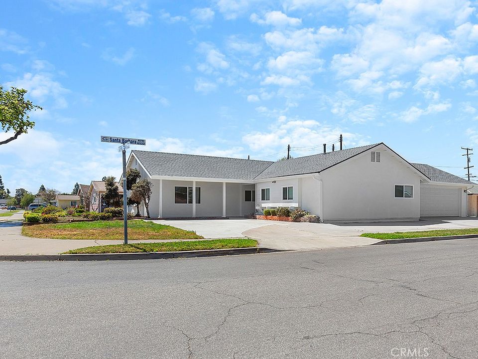 This newly rebuilt 4 bedroom 2 bath offers spacious living and abundant parking, including convenient in-and-out RV parking for a 50-foot RV. The open-concept kitchen, living, and dining areas flow seamlessly to a patio with a fireplace, perfect for gatherings. The garage, accessible from the patio, includes extra storage. The home boasts an en-suite bedroom, a private converted space with its own entrance and walk-in closet, and a sleek modern kitchen featuring quartz countertops, white shaker cabinets, and Samsung "SmartThings" appliances. A thoughtfully designed home that combines modern style with practicality!