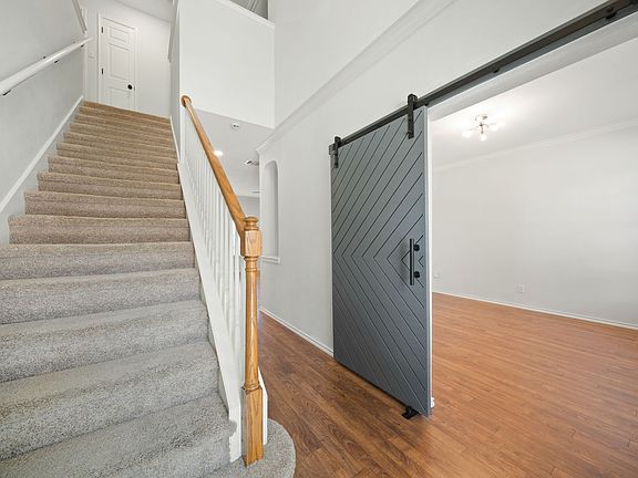 11822 Barkston Drive in San Antonio, TX 78253 is a single-family home located in the Westcreek subdivision. Built in 1998, it features 4 bedrooms, 2.5 bathrooms, and approximately 2,345 square feet of living space. The property boasts mature trees and well-maintained landscaping. Inside, the home has an open concept floor plan with lots of natural light, a dedicated office with a barn door, a shiplap dining room, and a mudroom. Recent updates include fresh paint throughout and the removal of all carpet.