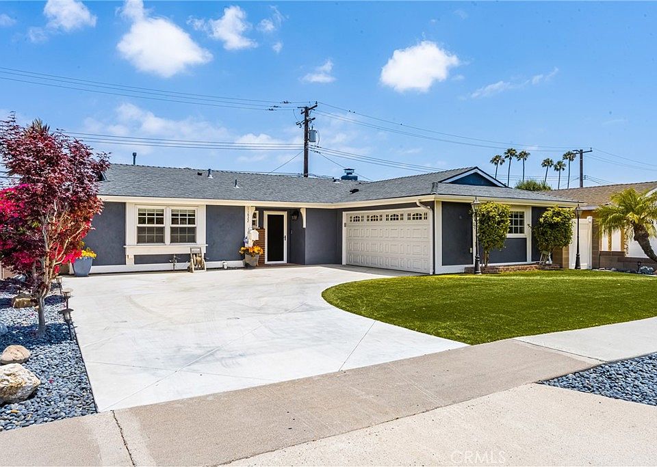 BEAUTIFULLY RENOVATED HOME with all the upgrades in the highly desirable Garden Park community. This turnkey 3-bedroom, 2-bath offers a perfect blend of comfort, style, and functionality starting with its inviting curb appeal that includes new artificial turf, established stone-mulch planting beds, a new main line, and a new driveway. The home is move-in ready with continuous vinyl flooring throughout, dual-pane vinyl windows and sliders, and a stunning kitchen with sleek quartz countertops, custom cabinetry, a large center island with plenty of storage, and premium stainless-steel appliances including a 6-burner WOLF range and an ultra-quiet Bosch dishwasher. There’s also a whole-house water filtration system! An open floor plan livingroom/kitchen, you’ll find a guest bathroom along with three well-proportioned bedrooms featuring ample closets and plenty of built-in storage. One guest bedroom even has a custom-made queen-sized Murphy bed that doubles as a desk. The master features an ensuite with a large shower and a custom floating vanity. All the home’s blinds are also custom-made blackout shades for when you need them. New Pex re-pipe, new A/C and heat pump, rewire, and upgraded electrical panel (including a subpanel in the garage) ensures peace of mind. The home is also a smart home–the lights, fans, locks, thermostat, and garage door opener can be controlled by your voice or by touch. The home has new PAID-OFF solar and 2 Tesla Powerwalls, and an EV charger in the garage. The insulated attached 2-car garage with a tankless water heater is finished with the same continuous flooring as the rest of the house, has plenty of custom cabinets, and can double as a bonus room. Last but not least, the home’s large backyard (featuring a gorgeous pool, a 60-jet jacuzzi, and a cedar gazebo) is a standout feature of this house. Hose off after your dip in the pool with your very own outdoor shower. You’ll also enjoy fresh fruit from your very own mature Navel orange and white nectarine trees. Whether you're a first-time buyer or looking for a long-term family home, this property offers a fantastic location in the top rated GGUSD - Barker Elementary, Bell Intermediate, and Pacifica High School. Plus, it’s down the street from beautiful Eastgate Park that hosts concerts, chili-cookoffs, and car shows. You’ll be close to shopping centers and there’s nearby access to the 405 & 22 freeways. Schedule a visit and fall in love with your future home!