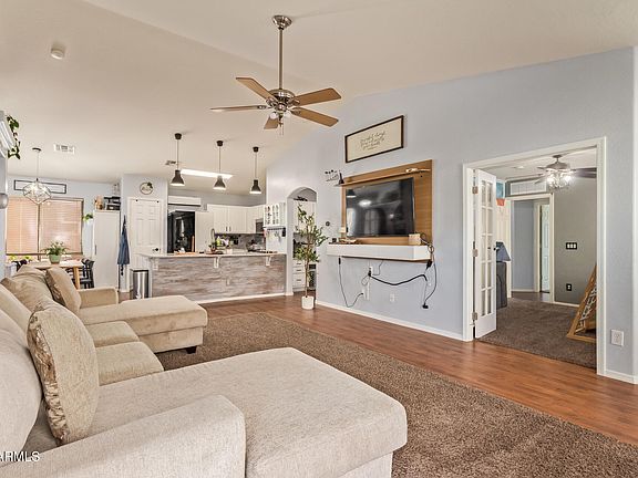 What a Great Find!!! (NO Age Restrictions!) This beautiful 4-bedroom, 2-bath home is nestled in the highly sought-after Peoria Unified School District and ready to impress! Enjoy a thoughtfully updated open floorplan with 1,531 sq. ft. of inviting living space that's perfect for everyday living or entertaining friends. The fantastic kitchen steals the show with its quartz granite counters, stylish farmhouse sink, and gleaming stainless-steel appliances ideal for whipping up your favorite meals! Upgrades abound, including a new A/C (2022), a 5-year-old water heater, water softener, and a mini split for extra comfort and energy efficiency. The backyard is beautifully designed with lush turf, pavers, and even a dog run for your furry companion. Enjoy peaceful mornings or sunset evenings with a view fence overlooking the greenbelt, no neighbors behind for extra privacy! Love the outdoors? You'll appreciate the neighborhood's scenic parks, walking, and biking paths that wind through this vibrant community. Add in easy access to the 303, tons of nearby amenities, and a great price for such a spectacular area, and you've found a home that truly has it all! Don't miss out!