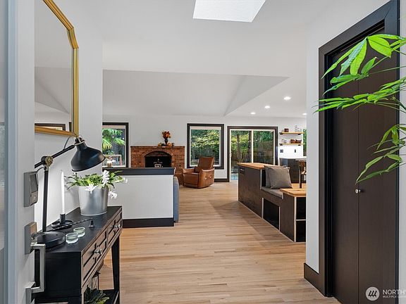 Experience modern Northwest living at its finest in this beautifully remodeled home nestled on a serene 1/3-acre lot in coveted Sunrise Trace. Recent upgrades include new windows, exterior doors, gutters, EV charger, furnace, hot water heater, and fencing. The bright, vaulted great room features skylights, recessed lighting, and a new wood-burning stove with brick surround. Enjoy refinished oak hardwoods and upgraded trim throughout. The chef’s kitchen boasts quartz counters, open shelving, island, and all-new stainless steel appliances with induction cooktop. Primary suite offers dual closets with custom built-ins and a spa-style bath. Private yard with patio, raised garden beds, water feature, and mature trees.