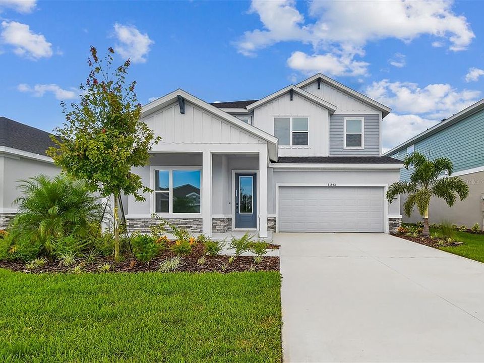 Final opportunities are here in the highly desirable Riverfield section of North River Ranch, and the Juniper plan is one you will not want to miss. This beautifully designed 5 bedroom, 3 bath home combines spacious living with elegant style in one of Parrish’s most sought after master planned communities. At the front of the home, a private enclosed study provides the perfect setting for a home office, hobby space, or quiet retreat. Moving into the heart of the home, the open concept design brings together the gourmet kitchen, dining area, and family room to create a warm and welcoming space for gatherings both large and small. The kitchen features designer finishes, ample cabinetry, and a center island that makes it easy to cook, entertain, and connect with family and friends. Upstairs, a generous loft offers flexible living space that can be transformed into a media room, play area, or second lounge to fit your lifestyle. The owners retreat offers a comfortable escape with a spa like bath and a spacious walk in closet. Secondary bedrooms are well sized, providing plenty of room for family or guests. Step outside to a backyard with plenty of space to design your own outdoor oasis. With room for a pool, this home allows you to take full advantage of Florida living. North River Ranch is more than just a community, it is a lifestyle. Enjoy resort style amenities, scenic community trails, playgrounds, and a true neighborhood atmosphere. With convenient access to Tampa, St. Petersburg, Sarasota, and nearby beaches, you will be connected to everything while enjoying the charm of Parrish living. Do not wait, these are the final opportunities to own in Riverfield at North River Ranch, and once they are gone, they are gone. Schedule your private tour of the Juniper today. **Purchase a select David Weekley Quick Move-in Home from October 1st – October 31st, 2025, qualified buyers may be eligible for a starting rate as low as 3.99% (4.271% APR) when the home purchase is financed with a conventional 7/6 adjustable-rate mortgage home loan from our preferred lender!