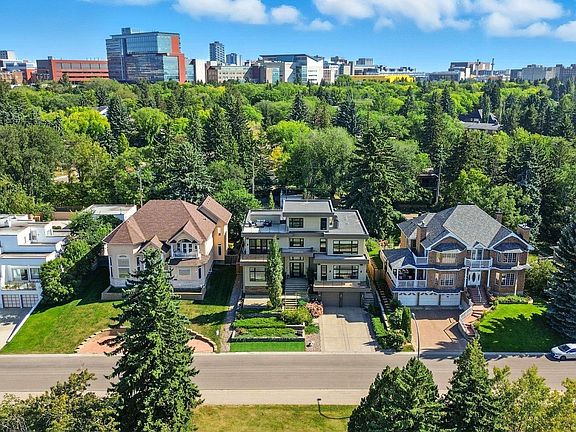 Perched in prestigious Windsor Park, this custom-built mansion offers a rare opportunity to own one of Edmonton’s most exclusive addresses. Overlooking the river, downtown skyline, and expansive parkland, this architectural gem is the epitome of luxury living. Spanning 5 levels and accessed by a private elevator, the home features 7 bedrooms and 9 bathrooms, w/ 4 being spa-inspired ensuites-featuring luxuries like a steam shower, soaker tub, bidet, and makeup desk. WIC's are abundant, and every detail showcases uncompromising craftsmanship, from eye-catching light fixtures to premium finishes throughout. Entertain effortlessly with a chef’s dream kitchen, butler’s pantry, covered patio, and a spectacular rooftop terrace with panoramic views. The sub-basement includes a home theatre, while the lower level offers an in home bar, rec room & 2-bdrm nanny suite with 2nd kitchen & laundry. Additional highlights: heated floors, AC, motorized blinds, central vac, & a tandem 4-car garage. This home is a STATEMENT!
