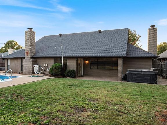 Spacious one level home in Redbud Estates with over 2,600 sq ft on a third of an acre. Completely livable and ready for repairs and updates. Features 3 bedrooms, 2 baths, 2 living areas with fireplaces, and a light-filled formal dining room. New roof to be installed prior to closing, furnace replaced in 2022, and newer hot water tank. Saltwater pool with new pump (2024) and liner (2022), covered patio, hot tub, and storm shelter under garage. Quiet street near shopping, great potential to personalize and build equity. Ask about viewing the pre-listing inspection.