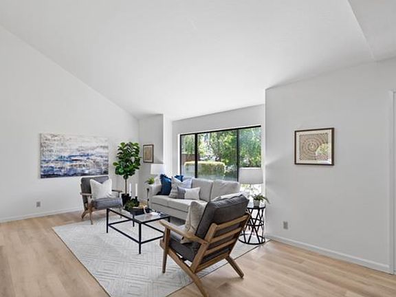Open layout with vaulted ceilings and large windows for abundant natural light
