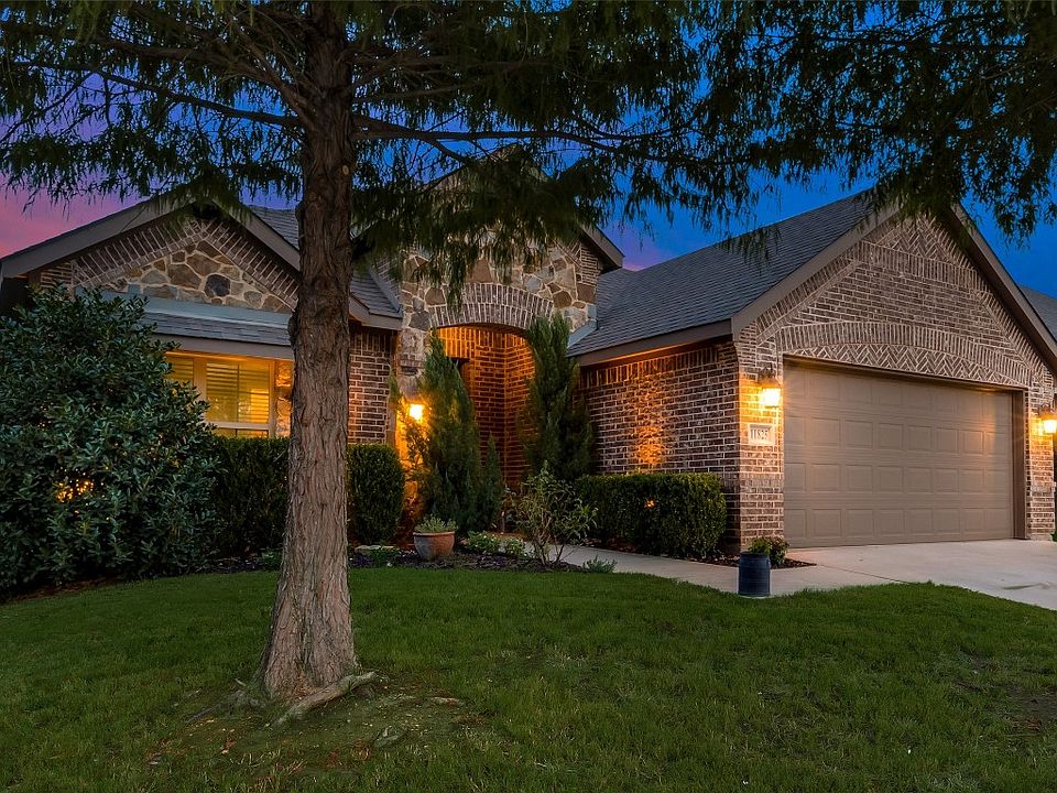Beautiful single story home! Stunning curb appeal with stone elevation and nice landscaping. Wood floors adorn the entry, hall, & family room. Corner fireplace with stone hearth in family room. Gourmet kitchen with granite counters, stainless vent hood, & stainless appliances. Primary Bedroom is perfect for king size furniture. Primary bath with granite counters, dual sinks, separate shower with rain head faucet, & garden soaking tub. Backyard with covered patio is perfect for outdoor living & entertaining. New Carpet! This home is a MUST SEE!